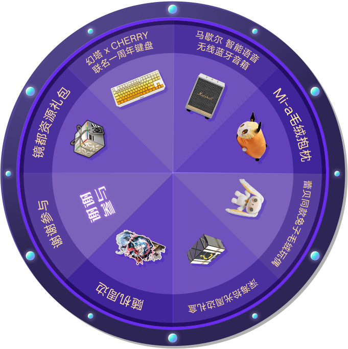 2、参与抽奖活动有机会获得幻塔 x CHERRY键盘、马歇尔音箱 、 深海拾光周边礼盒、Mi-a条绒抱枕及周边礼品。奖品数量有限,抽完即止。