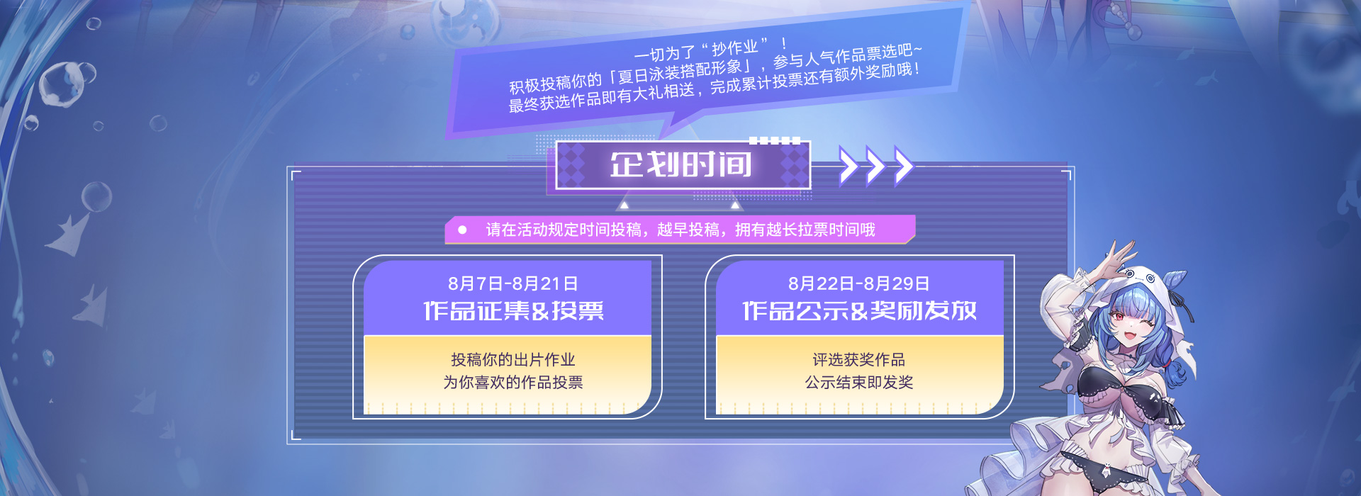 2.投稿页面仅显示最近上传的≤10个泳装形象,即需穿着海滨假日、海风絮语、夏日特调或海盐星趣任一时装,这才符合本次泳装特别企划主题;