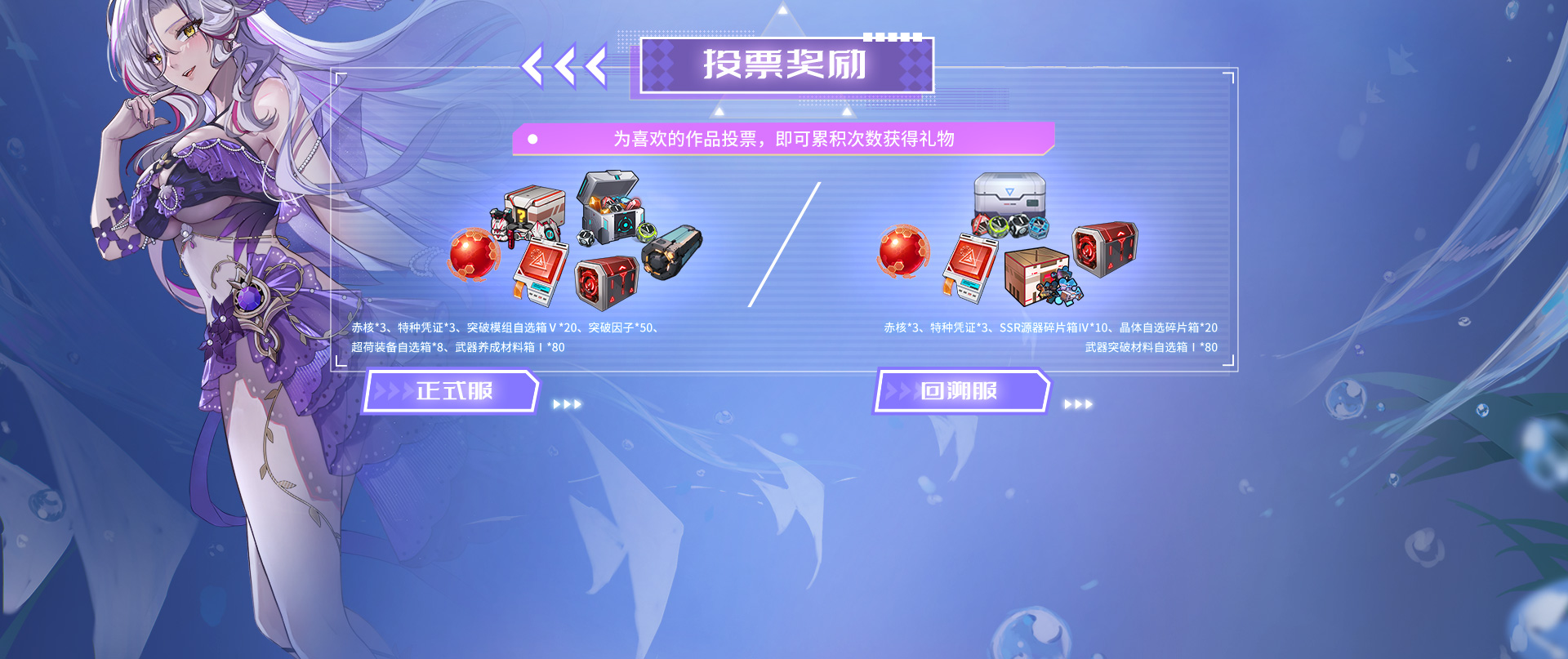 3.累积完成固定投票次数即可解锁阶段奖励,领取后将直接发放至登录角色邮箱,如遇延迟请耐心等待。